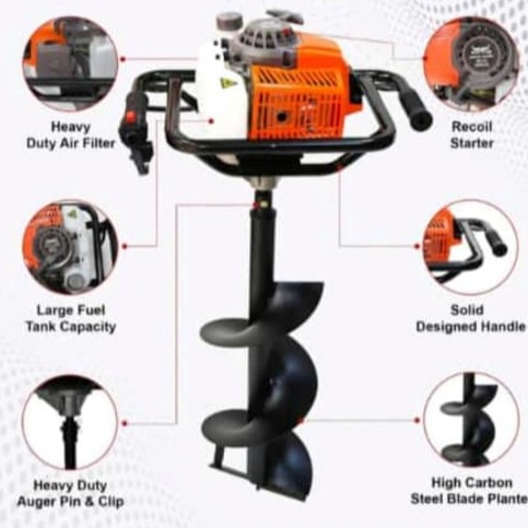 Auger Duty Duty ที่มีประสิทธิภาพ-พร้อมกับโครงเหล็กที่ทันสมัยประสิทธิภาพสูงกล่องเกียร์ที่ทนทานเหมาะสำหรับชายเดี่ยวที่ทำงานเครื่องยนต์ 2 จังหวะนี้มีน้ำมันเบนซินสูง 63cc 63cc มีความเร็วสว่านที่รวดเร็วและประสิทธิภาพสูงในระหว่างการใช้บ่อ